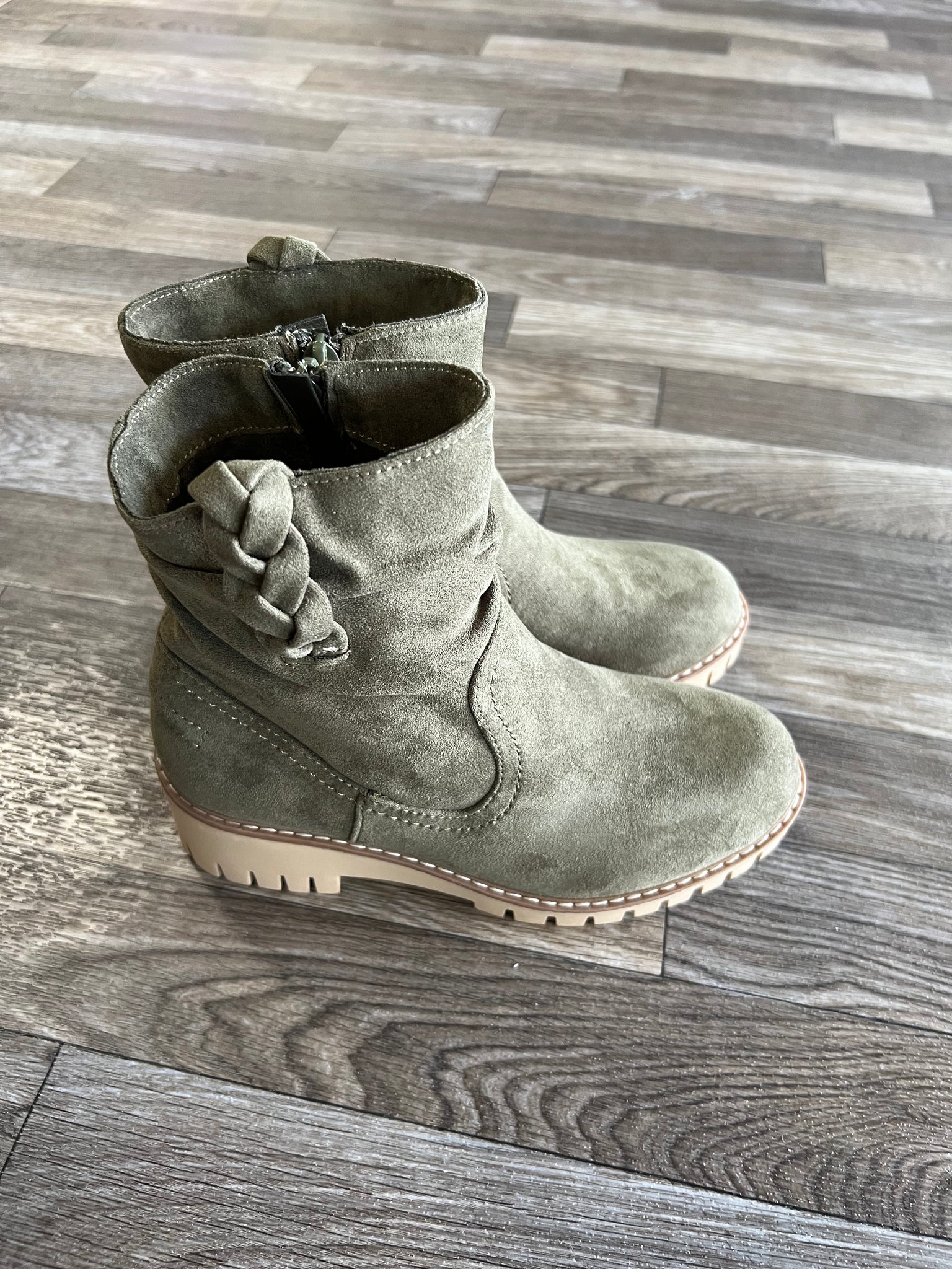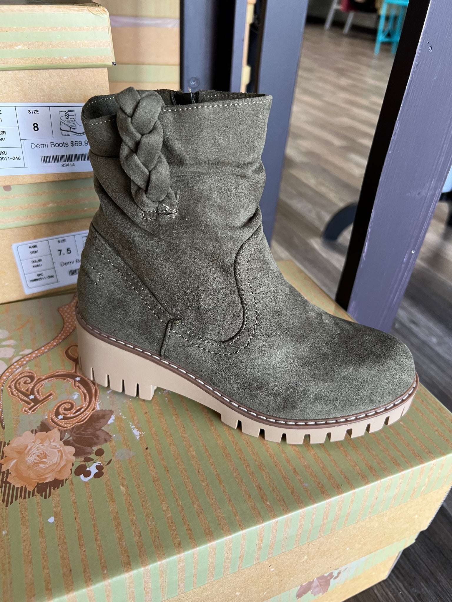 Make a statement with the Very G Demi Boot! Made from supple faux suede, it boasts delightful braid and stitch accents for added flair. The stylish 2" block heel combined with the rugged lug sole ensures steady, confident strides, while the extra cushioned footbed offers all-day comfort. Perfect for bringing a playful edge to your footwear lineup!